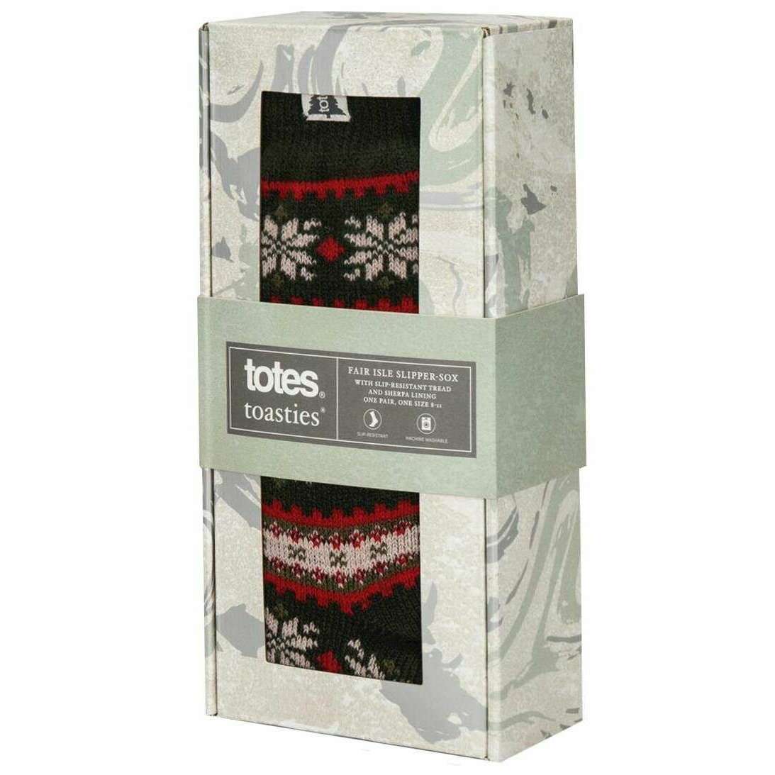 Perfectos para los hombres son estos Totes Toasties Red Fair Isle Slocks, también están hechos de 69% de acrílico, 31% de poliéster y revestimiento 100% de poliéster. Además, los calcetines rojos están diseñados en un patrón de Fairisle, se recomienda lavar a máquina a 30 grados para mantener estos calcetines en buenas condiciones. Todos los calcetines vienen completos con envases de tostadas de Totes. Los calcetines Slipper Fair Isle de Totes Toasties: el rojo es el par perfecto para hacer tareas en la casa mientras mantiene tus pies agradables y acogedores o simplemente para que se relajen en el sofá viendo tu película de invierno favorita. Este diseño de la isla justa es festivo y da un toque navideño y ha sido elaborado con forro de Sherpa para una calidez óptima. ¡Este par es el regalo perfecto para tu amado o para ti mismo!