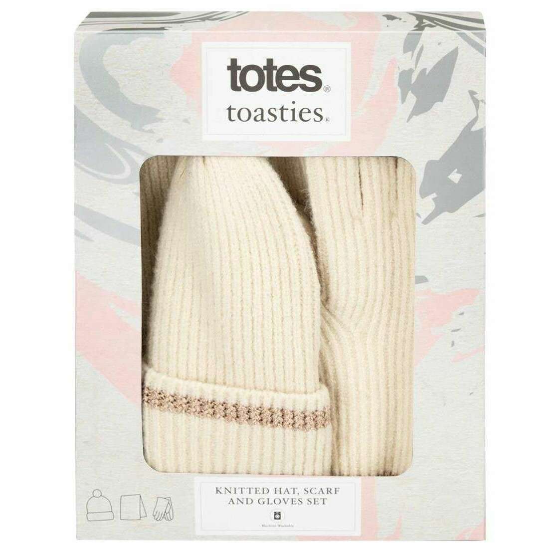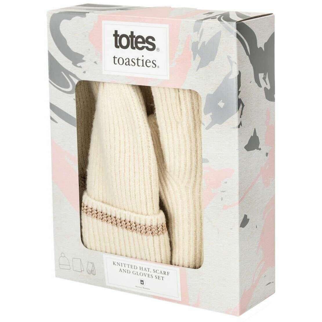 Set de regalo con gorro, bufanda y guantes de punto de Totes Toasties - Crema de avena