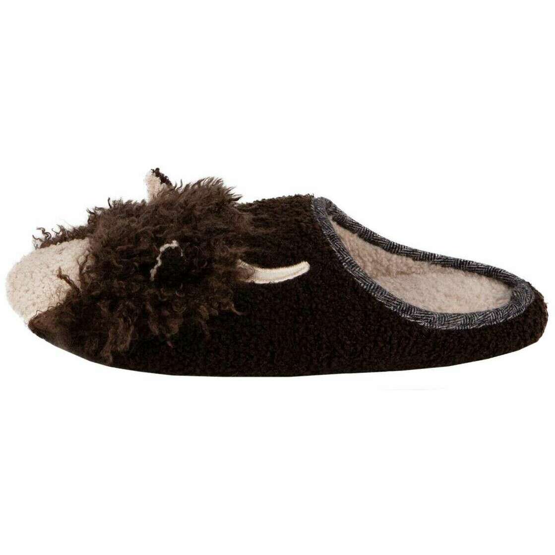Fabricados con la suela externa del 100% de poliéster y textil TPR son las zapatillas de mulas novedosas de la novedad de los hombres marrones por las tostadas de los diseñadores. Además, las zapatillas marrones están diseñadas en un patrón simple, se recomienda lavar a mano solo para mantener estas zapatillas en buenas condiciones. Todas las zapatillas vienen completas con envases de tostadas de bolsas. Totes Toasties Novelty apliques Mule Slippers: Brown presenta un diseño clásico y muy querido con un toque de vaca de las tierras altas con sus cuernos y nariz bordados y pelusa de imitación esponjosa. Estas zapatillas tienen un forro sherpa suave y cálido que mantiene los pies agradables y tostados mientras deambulan por la casa con espuma de memoria adicional y una suela duradera para la comodidad y el soporte. La diapositiva en el diseño de la mula permite una fácil eliminación cuando desea que sus pies respiren. ¡Hazlos tu elemento básico de invierno!