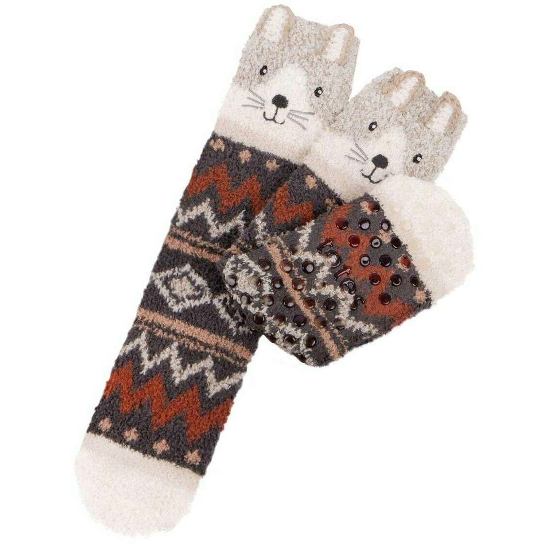 Totes Toasties Novelty SUPER SLIPPER SOCKS - CAT BROWN