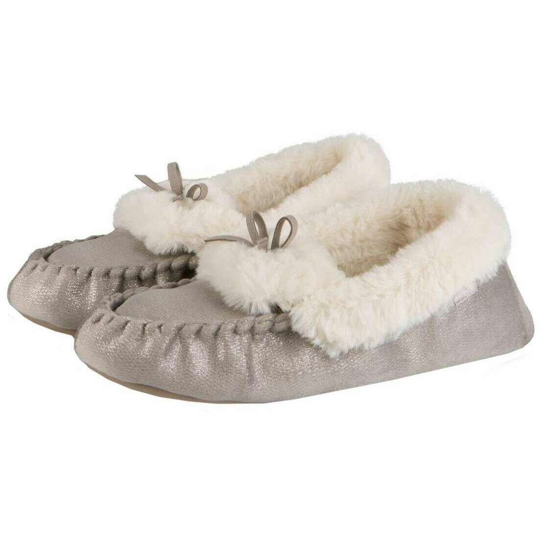 Totas Tostadas Sparkle Moccasin Slippers - Gray