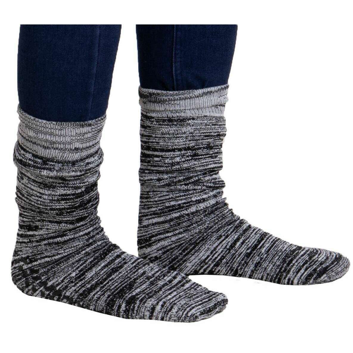 Presentados por la marca Totes Toasties, estos calcetines tipo pantuflas originales con cepillado térmico para hombre en color negro jaspeado están hechos de 91 % acrílico y 9 % poliamida. Además, los calcetines negros jaspeados están diseñados con un patrón único. Se recomienda lavarlos a máquina a 30 grados para mantener estos calcetines en buenas condiciones. Todos los calcetines vienen completos con un embalaje de totes tostadas. Los calcetines totes Toasties Thermal Brushed Original Slipper - Black Marl son los calcetines perfectos para mantener tus pies calientes y cómodos durante las estaciones más frías con la ayuda del forro de rizo térmico que garantiza una protección óptima contra el frío. Estos calcetines tienen agarres antideslizantes en la suela que te permiten caminar sobre cualquier superficie de tu casa sin preocuparte de caerte y lastimarte. Estos calcetines, que contienen hilos reciclados, son el regalo perfecto para tus seres queridos o para ti mismo.