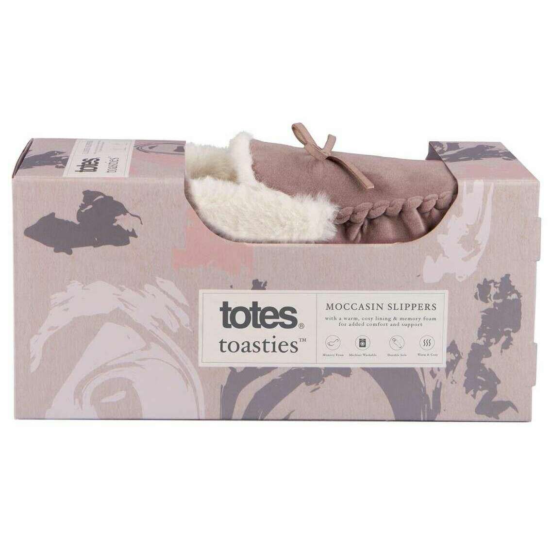 Totes Toasties Velor Moccasin Slippers - Mink Pink
