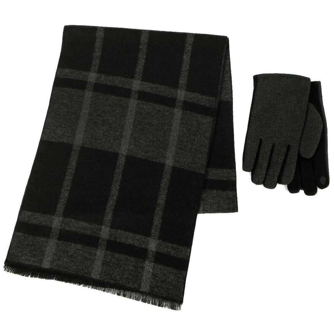 Set de regalo de bufanda a cuadros y guantes con forro térmico en mezcla de lana de Totes Toasties - Negro
