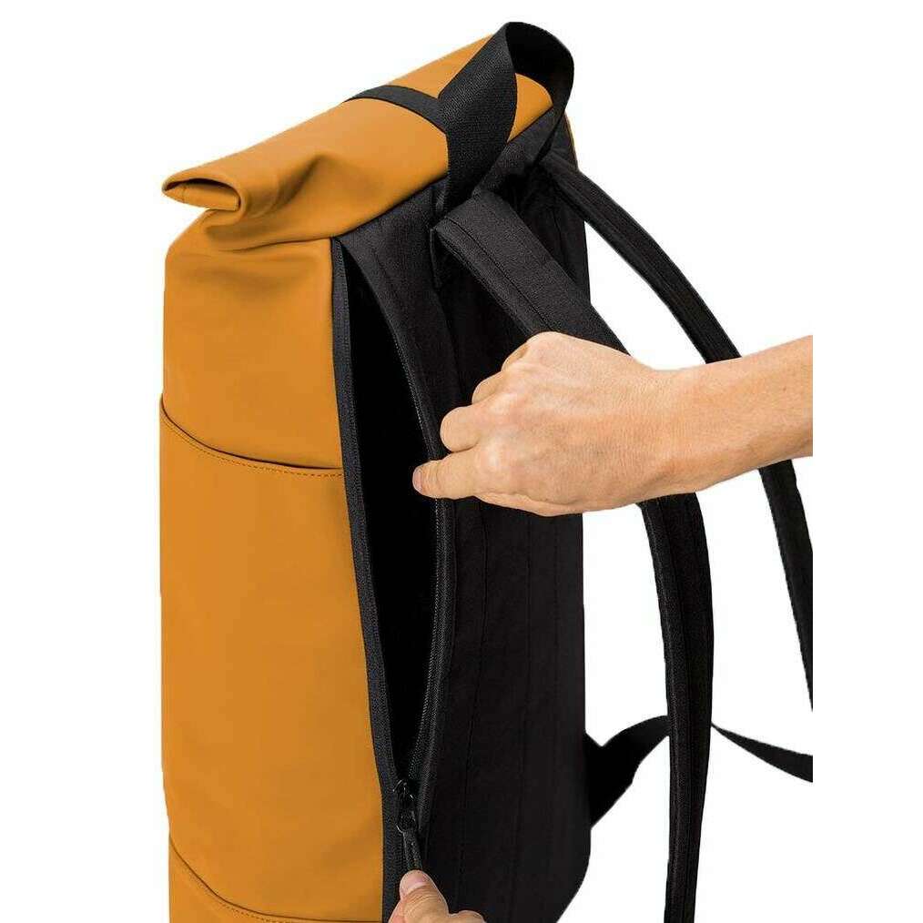 • Tapa enrollable para escalar el volumen que se puede cerrar fácil y rápidamente con cierre de gancho y bucle, la apertura principal se cierra además con dos botones a presión, acceso rápido al compartimento principal a través de una cremallera vertical, dos bolsillos externos a los lados, un bolsillo externo en el frente se cierra con una cremallera repelente al agua, compartimento interior de neopreno reciclado de alta calidad con amortiguador incorporado para una computadora portátil o tableta de 16", portabotellas elástico y llavero en el interior. Espalda reforzada con acolchado, Correas de hombro ajustables y acolchadas, Parte inferior acolchada para mayor seguridad y estabilidad, Etiqueta en relieve "Ucon Acrobatics" en la parte delantera, Impermeable, Vegano, Capacidad: 16 L