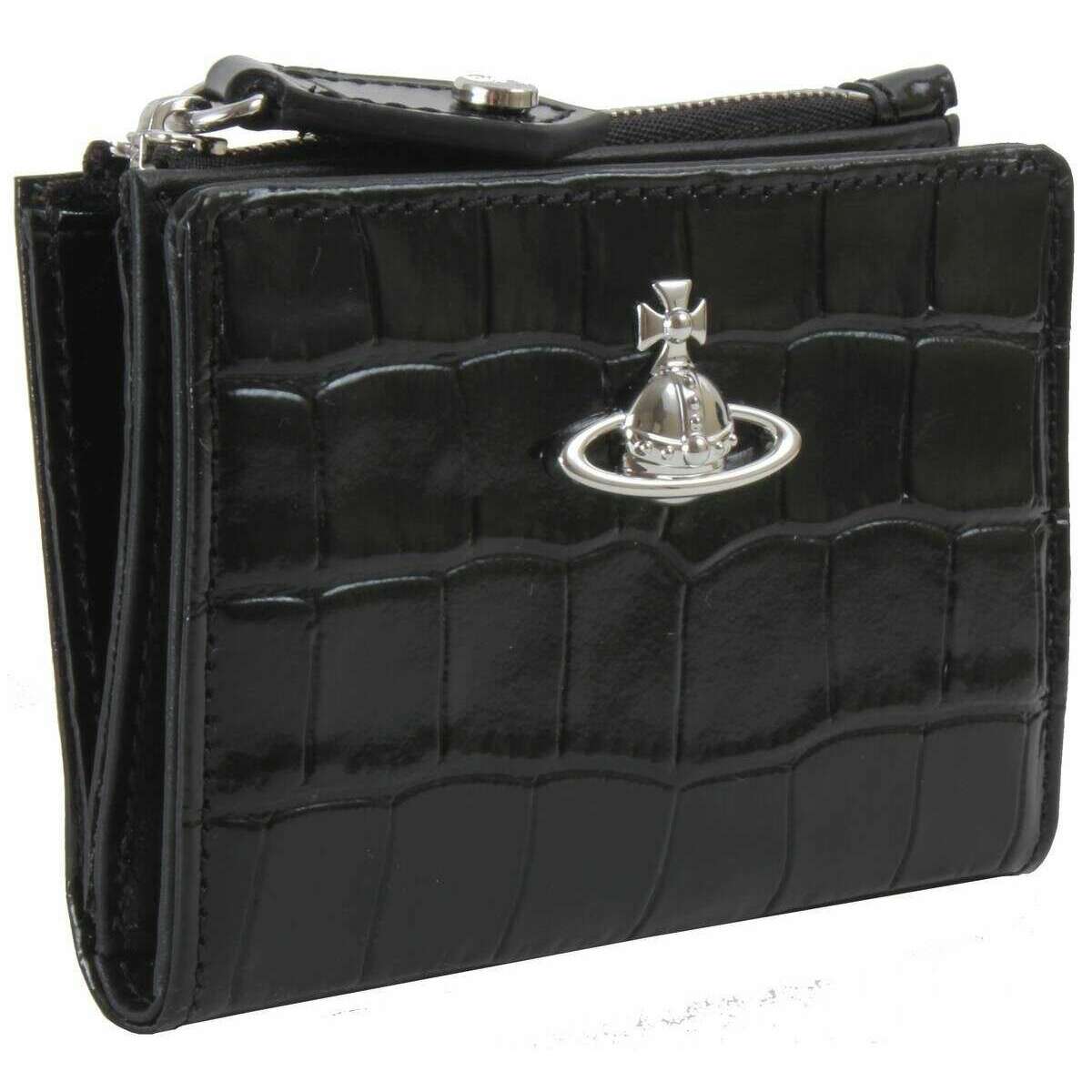 Presentado por la marca Vivienne Westwood, este tarjetero negro con solapa y diseño de cocodrilo en relieve para mujer está hecho 100 % de piel de becerro. Mide 9 cm (alto) x 10,5 cm (ancho) x 2,5 cm (profundidad). Todos los bolsos vienen completos en un embalaje de vivienne westwood. El tarjetero delgado con solapa y cocodrilo en relieve de Vivienne Westwood - Negro será un impresionante bolso de uso diario si quieres un diseño menos voluminoso que quepa perfectamente en bolsillos y bolsos más pequeños pero que no pierda el estilo. Tiene un simple botón de presión para abrir y cerrar la sección de tarjetas que ofrece 4 ranuras para tarjetas y en el otro lado hay un compartimento para monedas con cremallera. El orbe icónico se ubica con orgullo en el frente y te brinda el compañero perfecto.