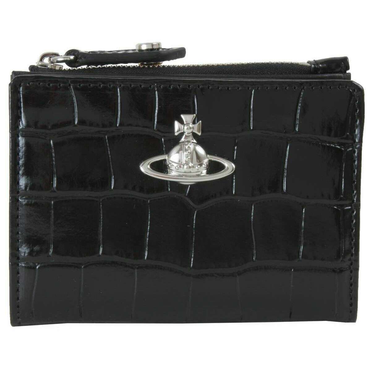 Vivienne Westwood Tarjetero fino con solapa y diseño de cocodrilo en relieve - Negro