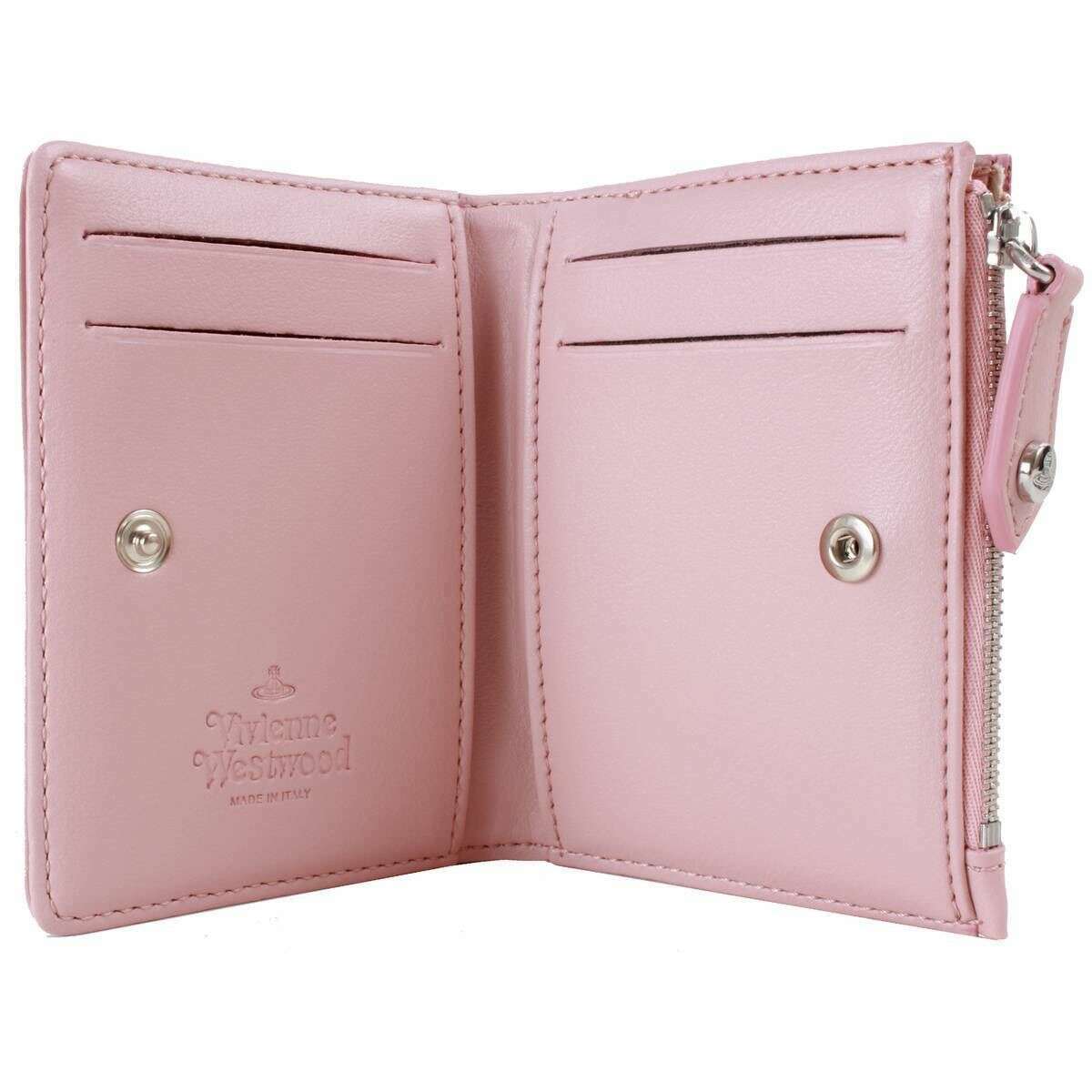 La diseñadora Vivienne Westwood te trae este bolso de mujer 100% poliéster en tonos rosa pastel. Mide 8 cm (alto) x 13 cm (ancho) x 1,5 cm (profundidad). Todos los bolsos vienen completos en una caja de regalo de Vivienne Westwood. El bolso con tarjetero liso y delgado con solapa de Vivienne Westwood - Rosa pastel será un bolso impresionante para todos los días si desea un diseño menos voluminoso que quepa perfectamente en bolsillos y bolsos más pequeños pero que no pierda el estilo. Tiene un simple botón de presión para abrir y cerrar la sección de tarjetas que ofrece 4 ranuras para tarjetas y en el otro lado hay un compartimento para monedas con cremallera. El orbe icónico se ubica con orgullo en el frente y te brinda el compañero perfecto.
