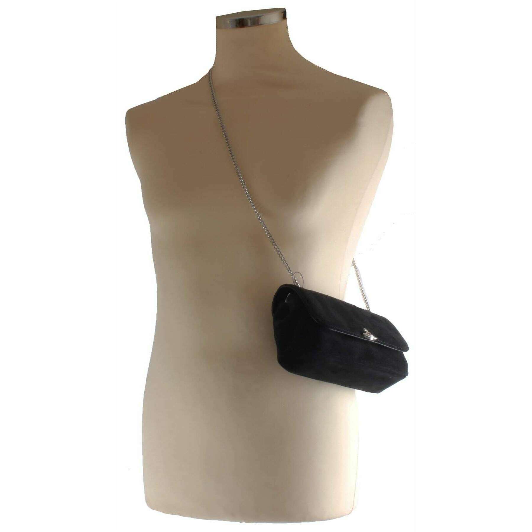 Este bolso bandolera con cadena de ante para mujer está diseñado por la marca Vivienne Westwood en color negro y está confeccionado 100% piel de becerro. Mide 14 cm (alto) x 22,5 cm (ancho) x 8 cm (profundidad). Todas las bolsas vienen completas con una bolsa para el polvo de Vivienne Westwood. El bolso bandolera con cadena de ante de Vivienne Westwood - Negro es un accesorio elegante y práctico detallado con un acabado impresionante y elegante que te permitirá destacar. Fabricado con materiales de alta calidad, cuenta con una correa de cadena para el hombro para opciones de uso versátiles, lo que lo convierte en una opción elegante para cualquier ocasión. Perfecto para añadir un toque de lujo a cualquier conjunto, este precioso bolso con cadena es esencial para completar tu look.