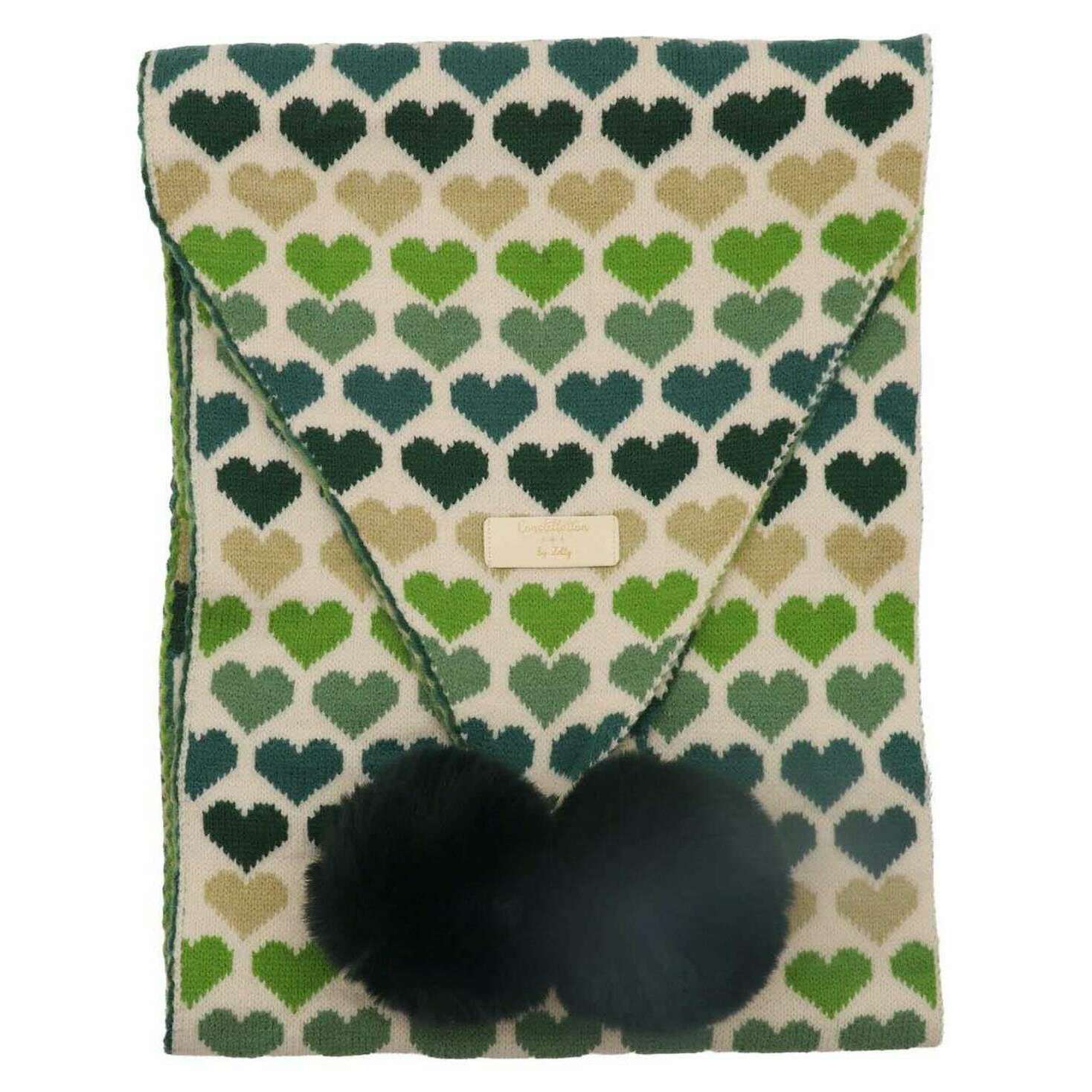 Bufanda Zelly con pompones en forma de corazón - Verde